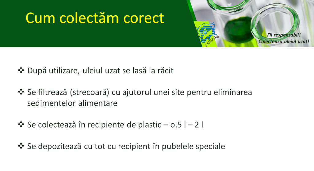 • preluarea uleiului de către firma autorizată, care va oferi și recompense proporționale cu cantitatea colectată.