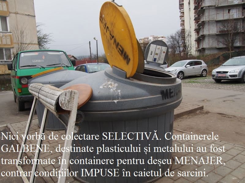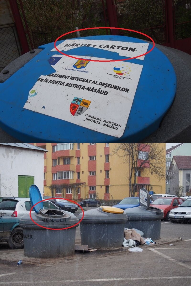 Implementarea colectării selective a sufocat Bistrița de gunoaie, fix în preajma campaniei prezidențiale. Sub presiune, VITALIA a găsit o soluție de rezervă și a scris “MENAJER” pe pubelele destinate STICLEI, PLASTICULUI și HÂRTIEI calmând astfel spiritele încinse. S-a urmărit doar rezolvarea de MOMENT a situației, pe motiv că proiectul NU a fost corect dimensionat pentru cantitatea de gunoi menajer produsă de fiecare cartier în parte.