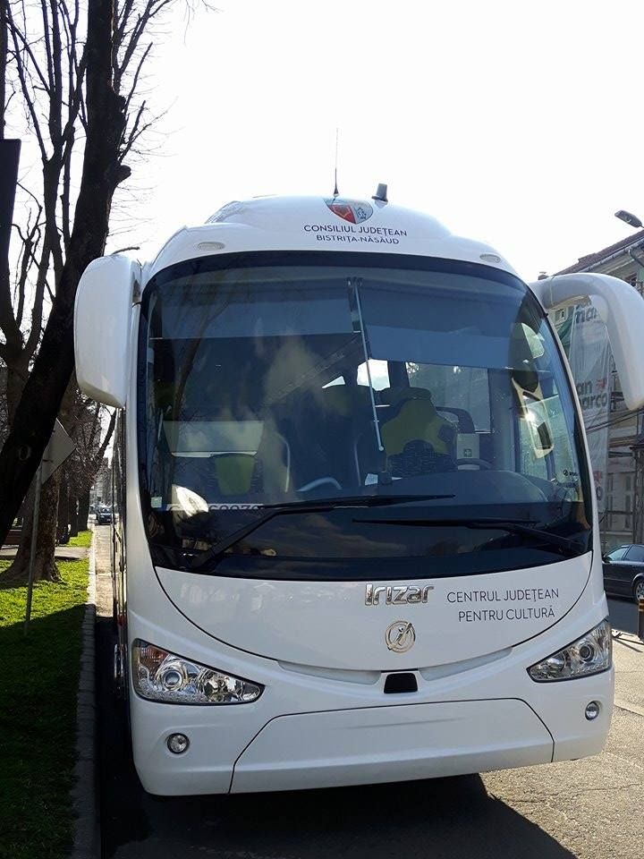 Autocarul a fost achiziționat prin licitație, din banii publici ai județului și deservește Centrul Județean pentru Cultură. Autocarul marca IRIZAR a fost inscripționat și parcat în fața instituției.