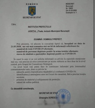 În schimb, Instituția Prefectului completează că ”orice comunicare cu privire la aspectele menționate anterior se va face DOAR de la nivel central, prin Grupul de Comunicare Strategică”.