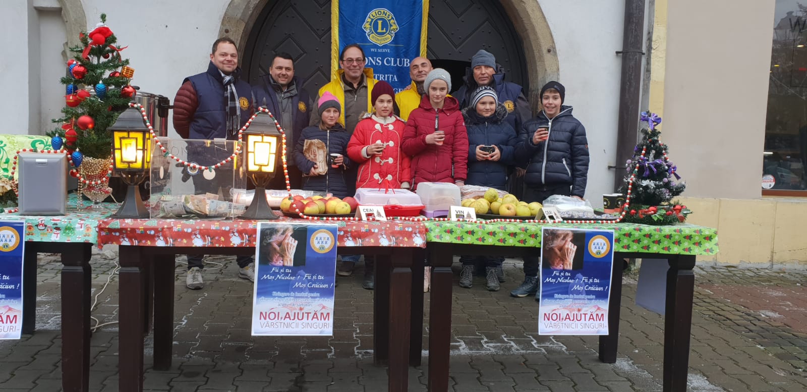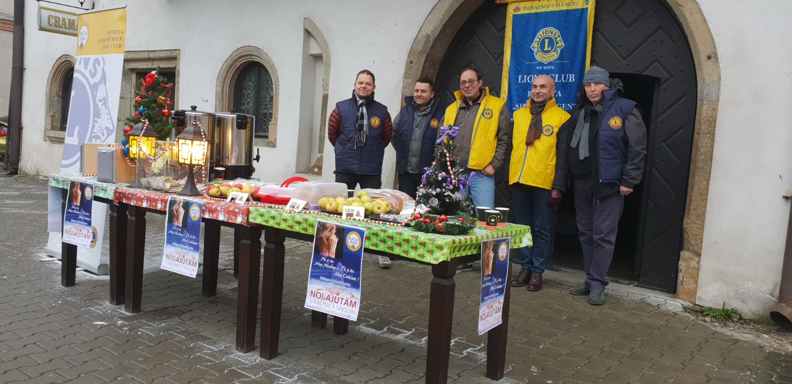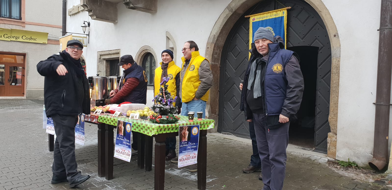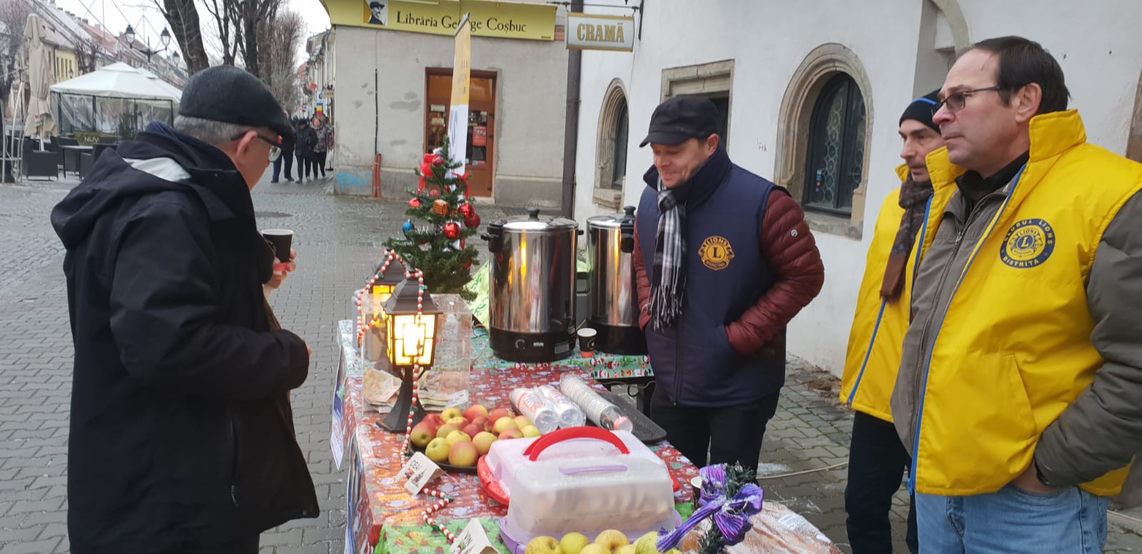 An de ani, membrii clubului Lions au ieșit în stradă, pe pietonalul Liviu Rebreanu unde au împărțit mere, cozonac, vin fiert și ceai cald pentru trecători.