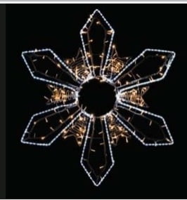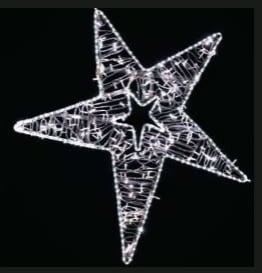STEA 2D cu 5 vârfuri (stea în stea), din tub luminos cu leduri albe şi șir luminos cu led-uri albe Flash – 240 de bucăți.