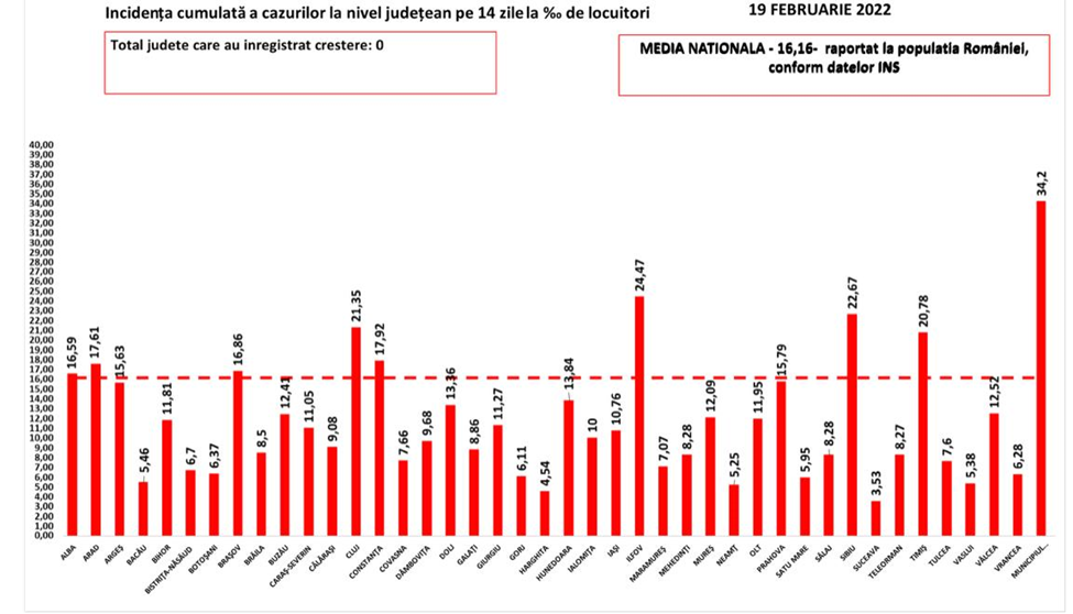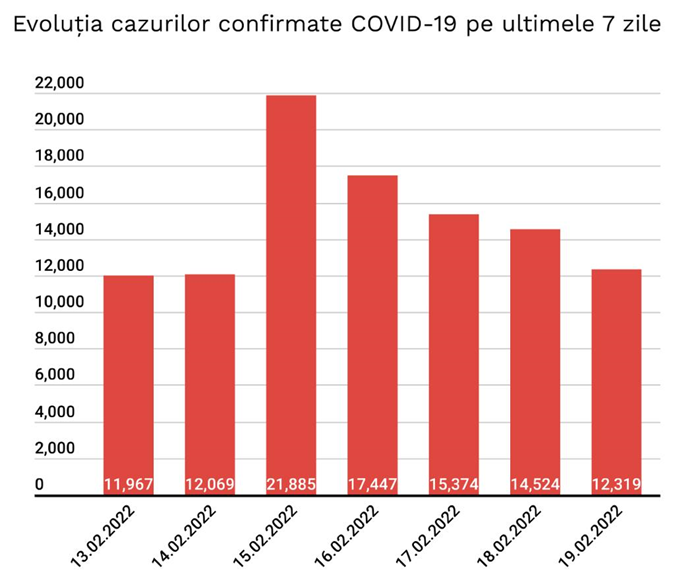 În intervalul 18.02.2022 (10:00) – 19.02.2022 (10:00) au fost raportate de către INSP 148 de decese (80 bărbați și 68 femei), dintre care 2 anterioare intervalului de referință, ale unor pacienți infectați cu noul coronavirus, internați în spitalele din Alba, Arad, Argeș, Bacău, Bihor, Bistrița-Năsăud, Botoșani, Brăila, Călărași, Caraș-Severin, Cluj, Constanța, Dâmbovița, Dolj, Galați, Harghita, Hunedoara, Iași, Mehedinți, Mureș, Neamț, Olt, Prahova, Sălaj, Satu Mare, Sibiu, Suceava, Timiș, Tulcea, Vaslui, Vrancea și Municipiul București.
