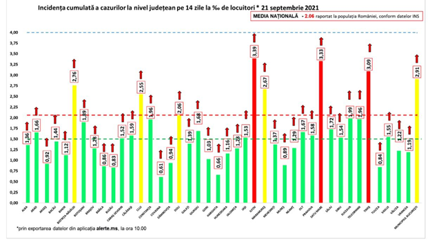 Până marți, 21 septembrie, la nivelul județului Bistrița-Năsăud au fost raportate următoarele date referitoare la situația epidemiologică privind îmbolnăvirea cu noul coronavirus: