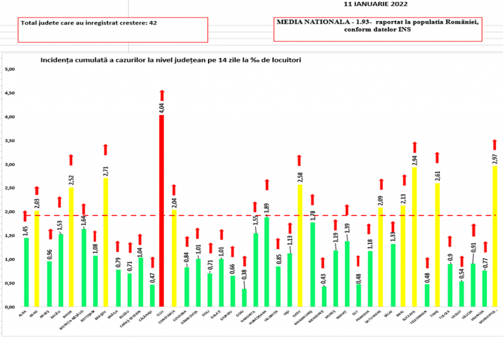 Până marți, 11 ianuarie, la nivelul județului Bistrița-Năsăud au fost raportate următoarele date referitoare la situația epidemiologică privind îmbolnăvirea cu noul coronavirus: