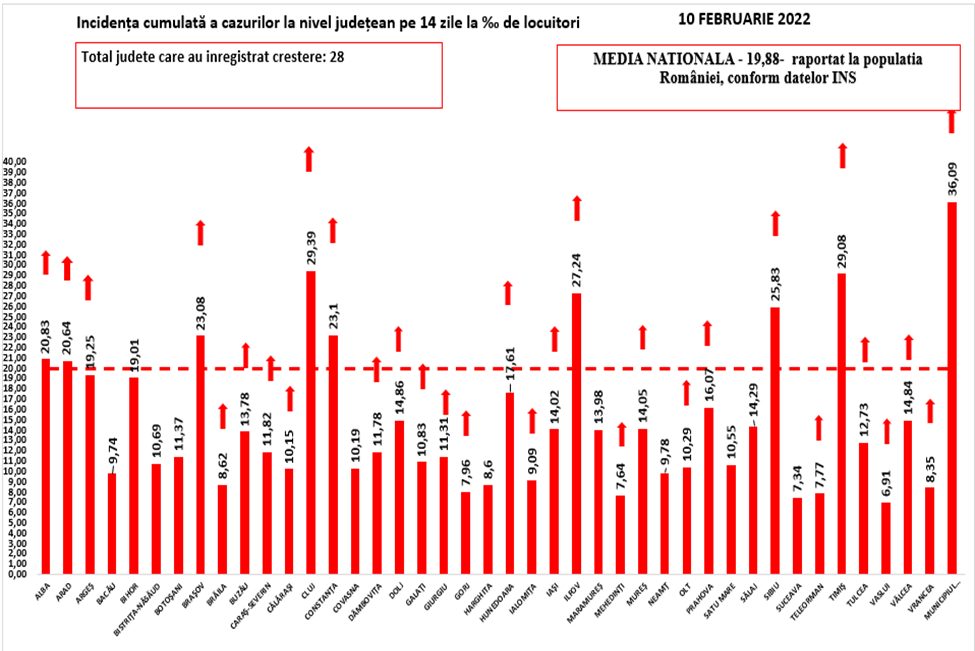 În intervalul 09.02.2022 (10:00) – 10.02.2022 (10:00) au fost raportate de către INSP 139 de decese (86 bărbați și 53 femei), dintre care unul anterior intervalului de referință, ale unor pacienți infectați cu noul coronavirus, internați în spitalele din Alba, Arad, Argeș, Bacău, Bistrița-Năsăud, Botoșani, Brăila, Brașov, Caraș-Severin, Călărași, Cluj, Constanța, Covasna, Dâmbovița, Dolj, Galați, Gorj, Harghita, Hunedoara, Iași, Ilfov, Maramureș, Mehedinți, Mureș, Neamț, Prahova, Sălaj, Satu Mare, Sibiu, Suceava, Timiș, Vaslui și Municipiul București.