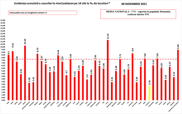 | Nr. crt. | Județ | Număr de cazuri confirmate(total) | Număr de cazuri nou confirmate | Incidența înregistrată la 14 zile |