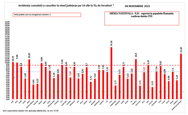 Până joi, 4 noiembrie, la nivelul județului Bistrița-Năsăud au fost raportate următoarele date referitoare la situația epidemiologică privind îmbolnăvirea cu noul coronavirus: