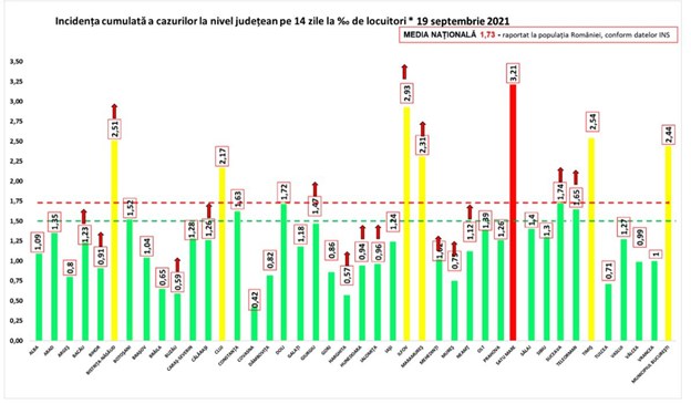 În intervalul 18.09.2021 (10:00) – 19.09.2021 (10:00) au fost raportate de către INSP 58 de decese (32 bărbați și 26 femei), ale unor pacienți infectați cu noul coronavirus, internați în spitalele din Alba, Arad, Argeș, Bacău, Bihor, Brăila, Bistrița-Năsăud, Botoșani, Buzău, Caraș-Severin, Călărași, Cluj, Dolj, Gorj, Iași, Ilfov, Maramureș, Mehedinți, Neamț, Prahova, Satu Mare, Sibiu, Suceava, Vaslui, Vâlcea, Vrancea și Municipiul București.