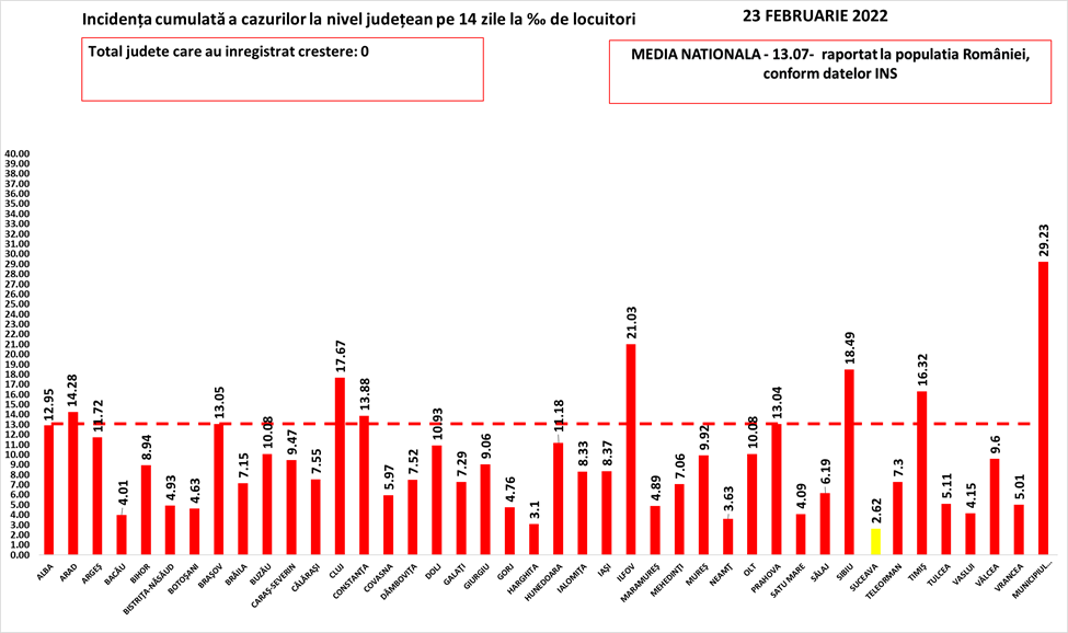 Distribuția pe județe a cazurilor per total și a celor noi o regăsiți în tabelul de mai jos.