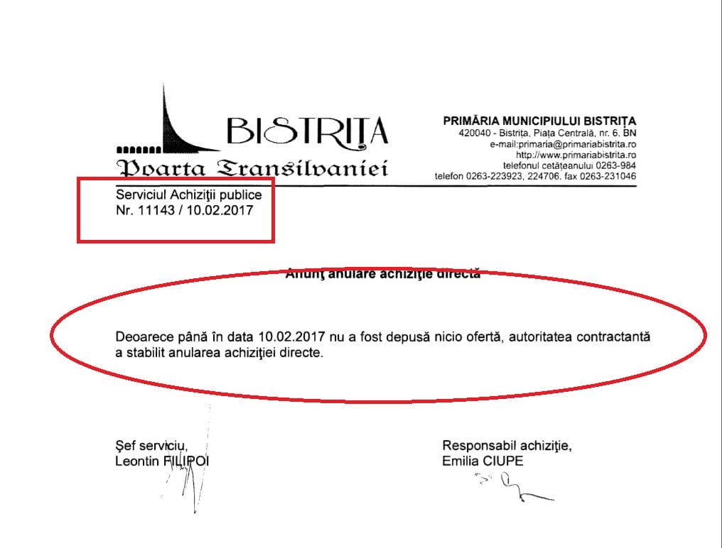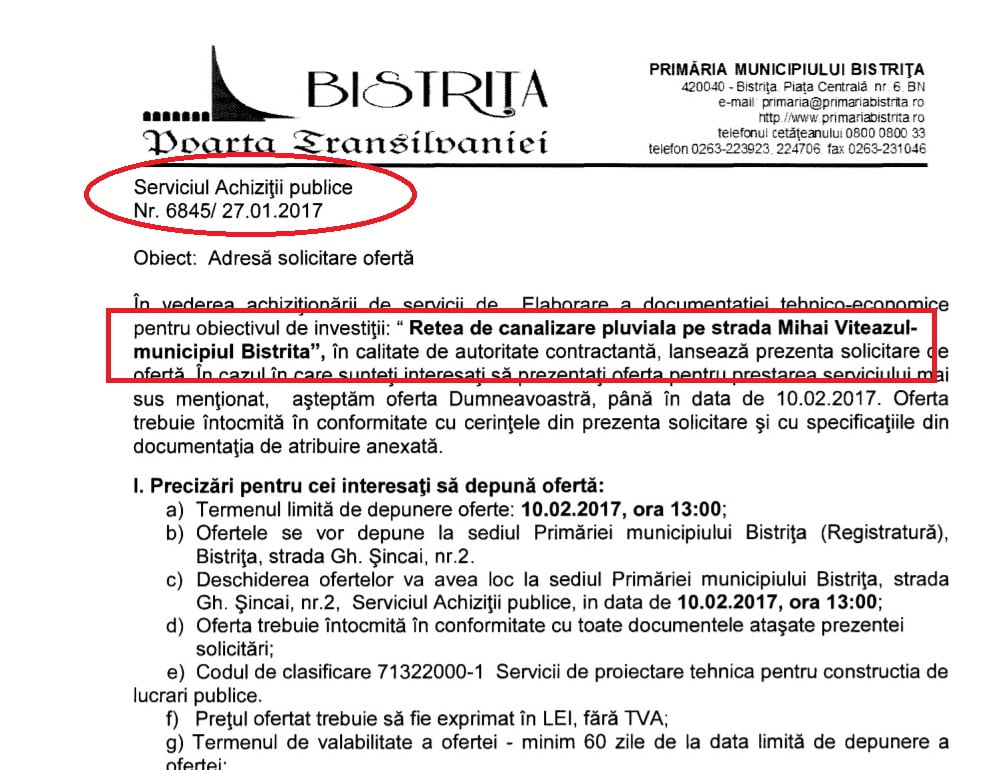 Prin HCL nr. 89/2014 s-a suplimentat participarea municipiului cu 600.000 de lei, captal către Aquabis, pentru realizarea rețelelor de canalizare pluvială. Compania NU a realizat această investiție nici în 2014 și nici în 2015, iar la întocmirea bugetului pe 2017, Primăria Bistrița a prins această investiție pe buget și urma să o realizeze în regie proprie. 150.000 de lei au fost puși deoparte, dar licitația a fost ANULATĂ, deoarece NU s-a prezentat niciun ofertant. Deși era o investiție de URGENȚĂ, anunțul a fost postat pe site-ul Primăriei doar 2 săptămâni, din 27 ianuarie până în 10 februarie.