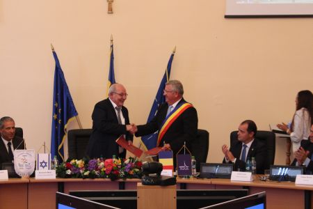 Primarul evreu Rahamim Malul şi Ovidiu Teodor Creţu au semnat înţelegerea de Cooperare între Municipiul Rehovot (Israel) şi Municipiul Bistriţa (România).