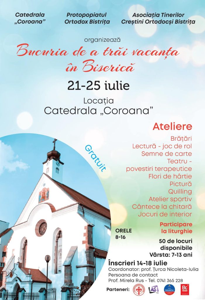 Potrivit protopopului Marius Pintican, activitățile sunt organizate în cadrul proiectului ”Bucuria de a trăi vacanța în Biserică!”, o inițiativă a Protopopiatului Ortodox Bistrița, în colaborare cu Asociația Tinerilor Creștini Ortodocși Bistrița.