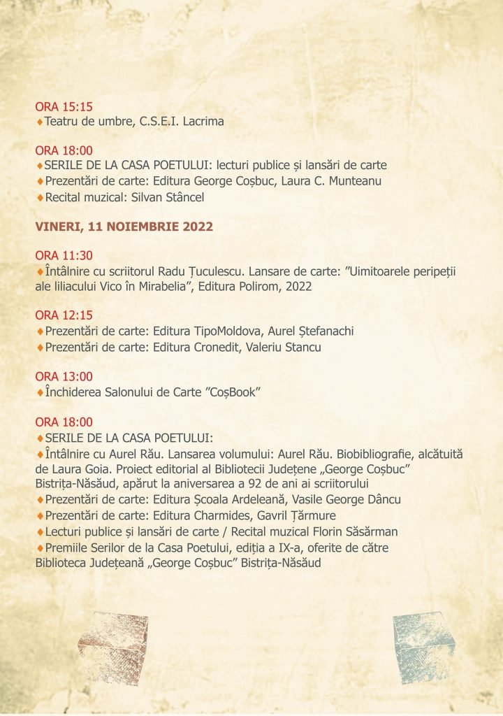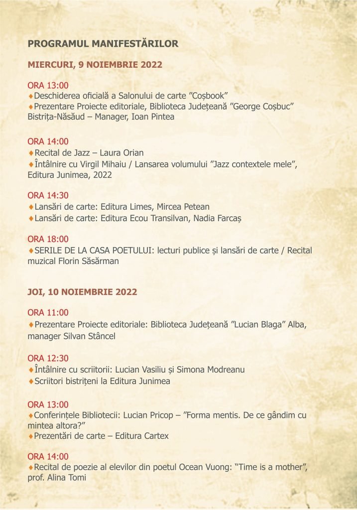În perioada 9 – 11 noiembrie, Consiliul Județean Bistrița-Năsăud și Biblioteca Județeană ”George Coșbuc” Bistrița-Năsăud organizează Salonul de Carte CoșBook, eveniment care aduce la Bistrița cărți pentru toate vârstele.
