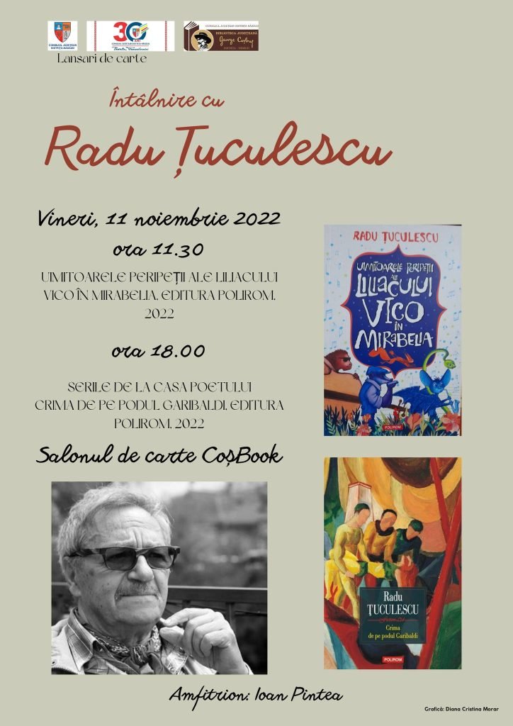 • Întâlnire cu scriitorul Radu Țuculescu. Lansare de carte: „Uimitoarele peripeții ale liliacului Vico în Mirabelia”, Editura Polirom, 2022
