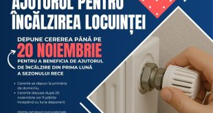 Read More »20 noiembrie este termenul-limită pentru a beneficia de ajutorul de încălzire din prima lună a sezonului rece