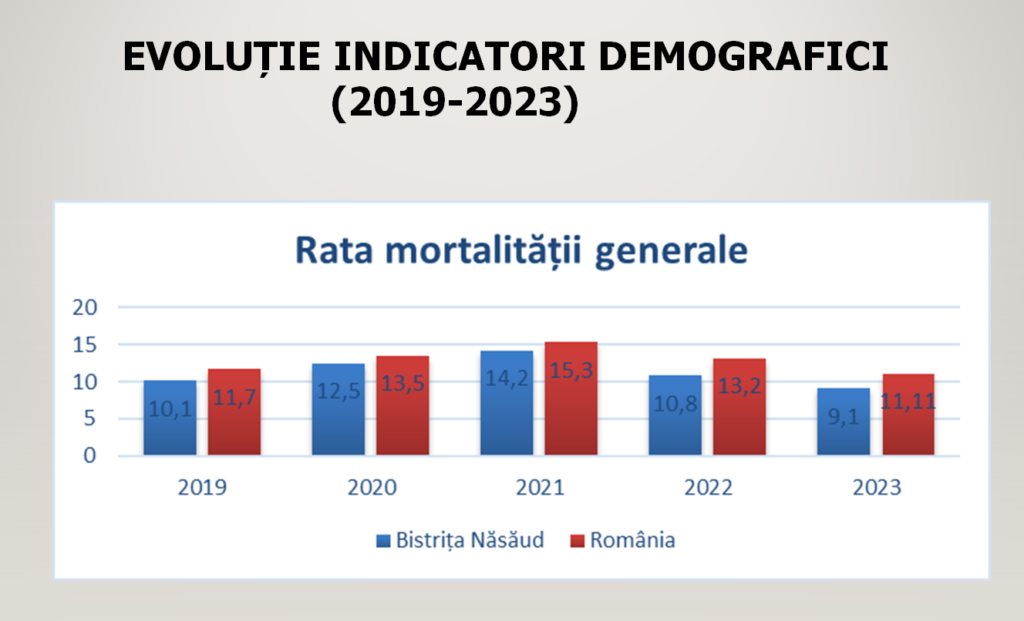 ”Mortalitatea a fost afectată de pandemie pentru că în anii 2020, 2021, 2022 a fost mult mai mare. Abia de anul trecut a început să se normalizeze și să scadă la 9,1 la mie, sub media națională”, a spus dr. Anca Andrițoiu, directorul Direcției de Sănătate Publică Bistrița-Năsăud.