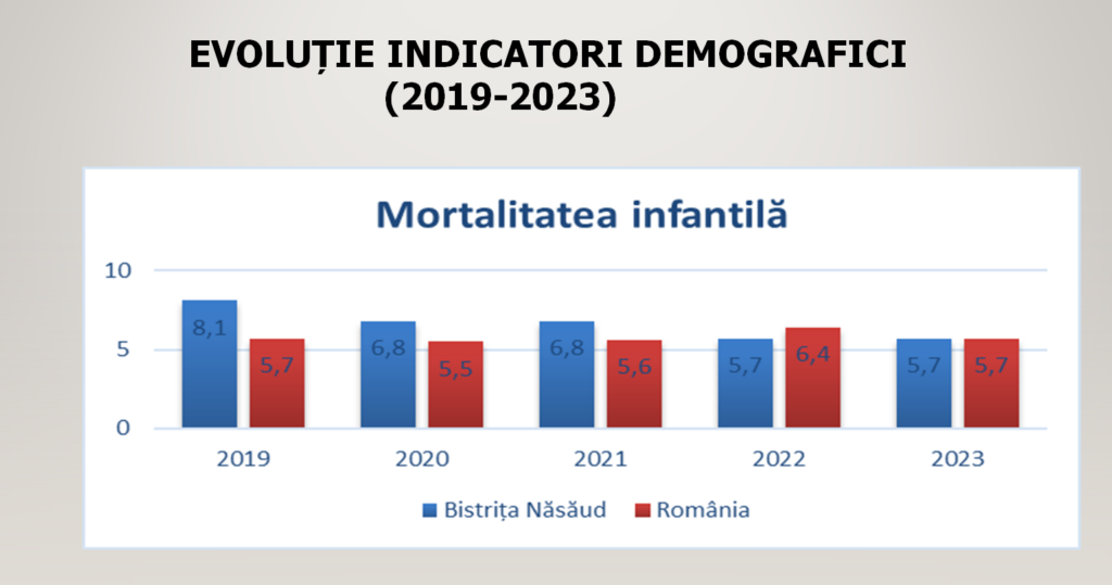 În ceea ce privește mortalitatea infantilă, principalele cauze ale deceselor înregistrate în rândul copiilor au fost: afecțiunile perinatale, malformațiile congenitale, anomaliile cromozomiale și afecțiunile respiratorii.