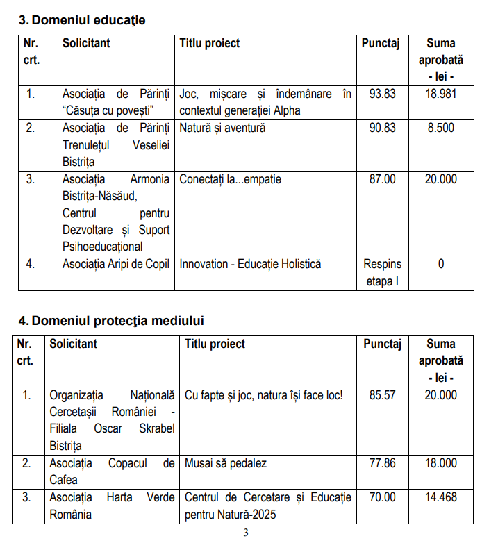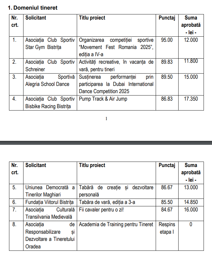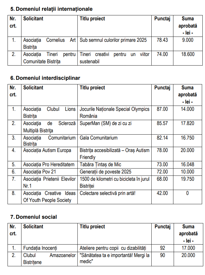 Potrivit municipalității, în sesiunea de depunere a proiectelor, organizată în perioada 27 martie – 23 aprilie, persoanele fizice, asociațiile și fundațiile solicitante de finanțare nerambursabilă de la bugetul local al municipiului Bistrița au depus 52 de proiecte, care au fost evaluate de către comisiile desemnate printr-o hotărâre a Consiliului Local din 26.02.2025.