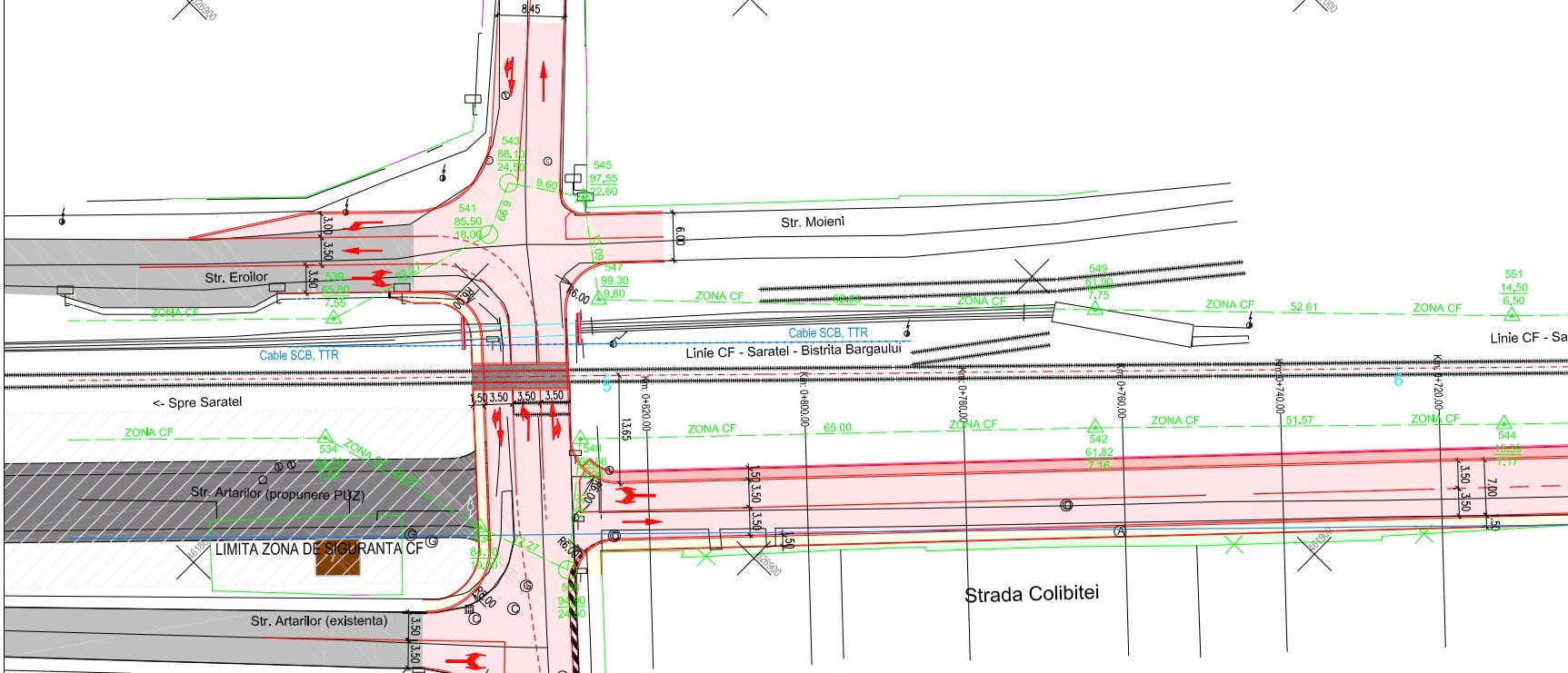 Având în vedere că strada Colibiței se află în zona de protecție a C.F.R, traseul în plan al drumului propus pentru modernizare trebuie să respecte unele condiții specifice pentru acest tip de lucrare. Axul drumului trebuie să păstreze o distanță constantă față de calea ferată, deci vor exista corecții acolo unde este necesar, pentru a respecta prevederile legale. – se arată în documentele transmise Primăriei Bistrița de oficialii C.F.R.