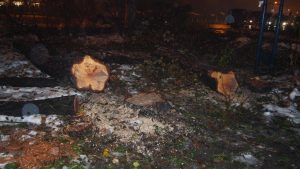 Cu câteva zile înaintea sărbătorilor de iarnă, mai mulți arbori de pe strada 1 Decembrie din municipiul Bistrița au fost puși la pământ, lucru care a stârnit un val de reacții venite în special din partea ecologiștilor. Unul dintre cei care au reacționat dur a fost consilierul municipal Teodor Mârza. Acesta și-a exprimat punctul de vedere printr-un mesaj: ”Este incredibil cum ajung unii să ne mutileze orașul în funcție de te miri ce mâncare stricată au mâncat la prânz. După ce că au împopoțonat piața cu tot felul de kiciuri, i-au făcut și statuie lui Aladin de la Moldova (n.r. – domnitorul Petru Rareș), acum au tăiat copacii din jurul CJ ului, noaptea, ca hoții. Urâți oameni, mi se face greață când văd așa ceva” spunea consilierul ecologist.