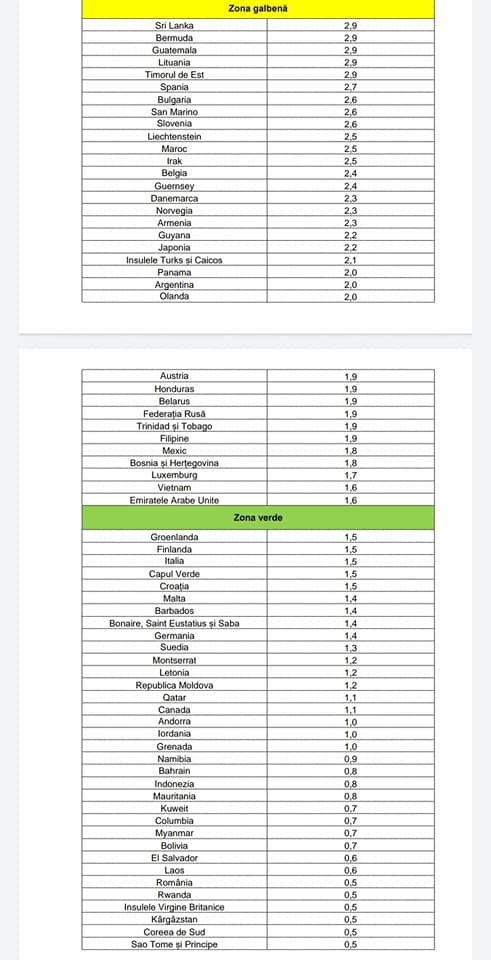 În zona verde au intrat Finlanda, Malta, Andorra, Groenlanda şi Bonaire, Saint Eustatius şi Saba.