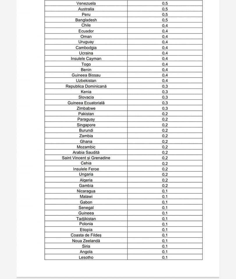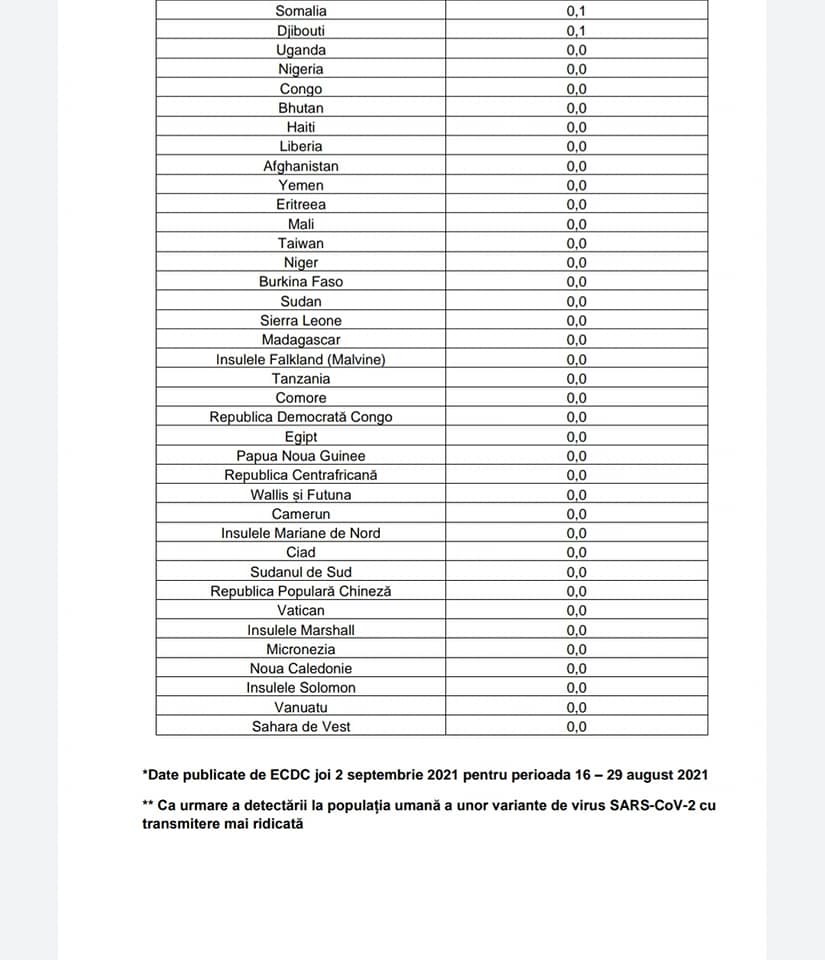 Lista intră în vigoare la data de 05.09.2021, ora 00.00