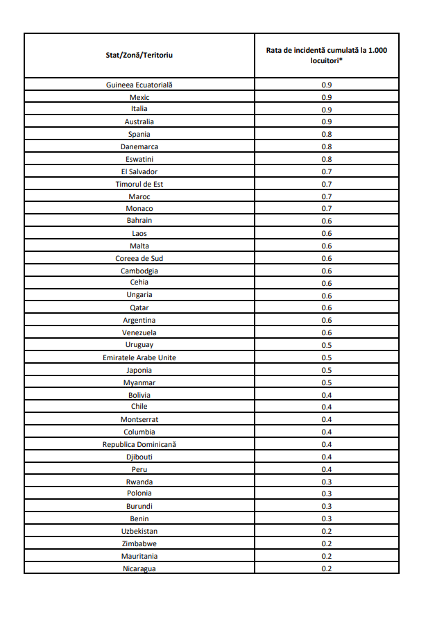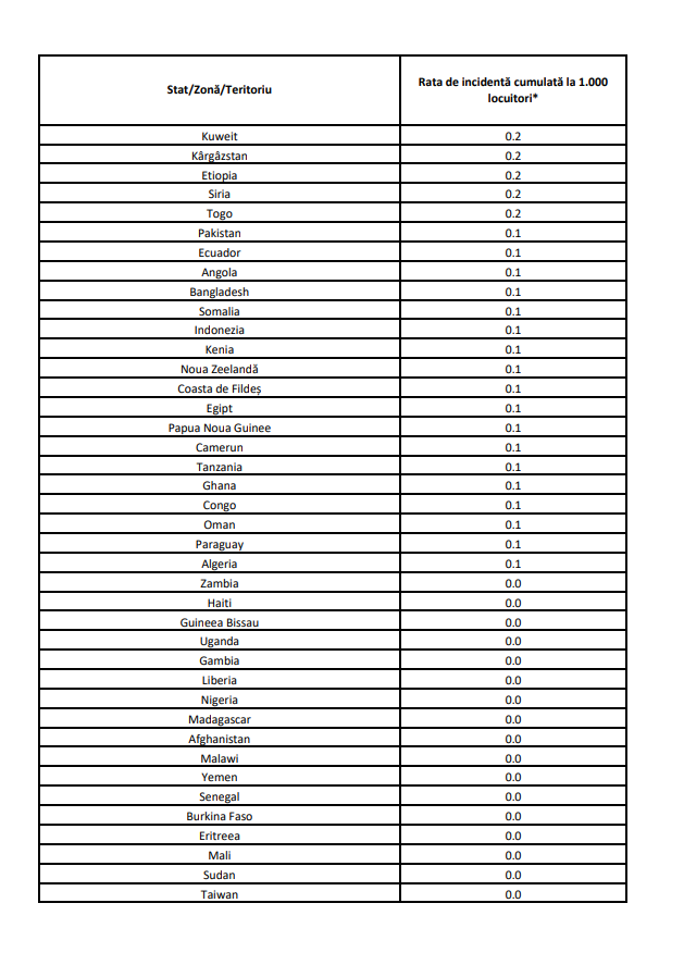 Noua listă a zonelor cu risc epidemiologic ridicat poate fi consultată mai jos: