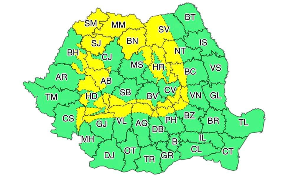 Administraţia Naţională de Meteorologie a emis o atenționare cod galben de ninsori abundente la munte şi în nord-vestul României, valabilă pentru ziua de vineri 24 decembrie, de la ora 2:00, până la ora 14:00.