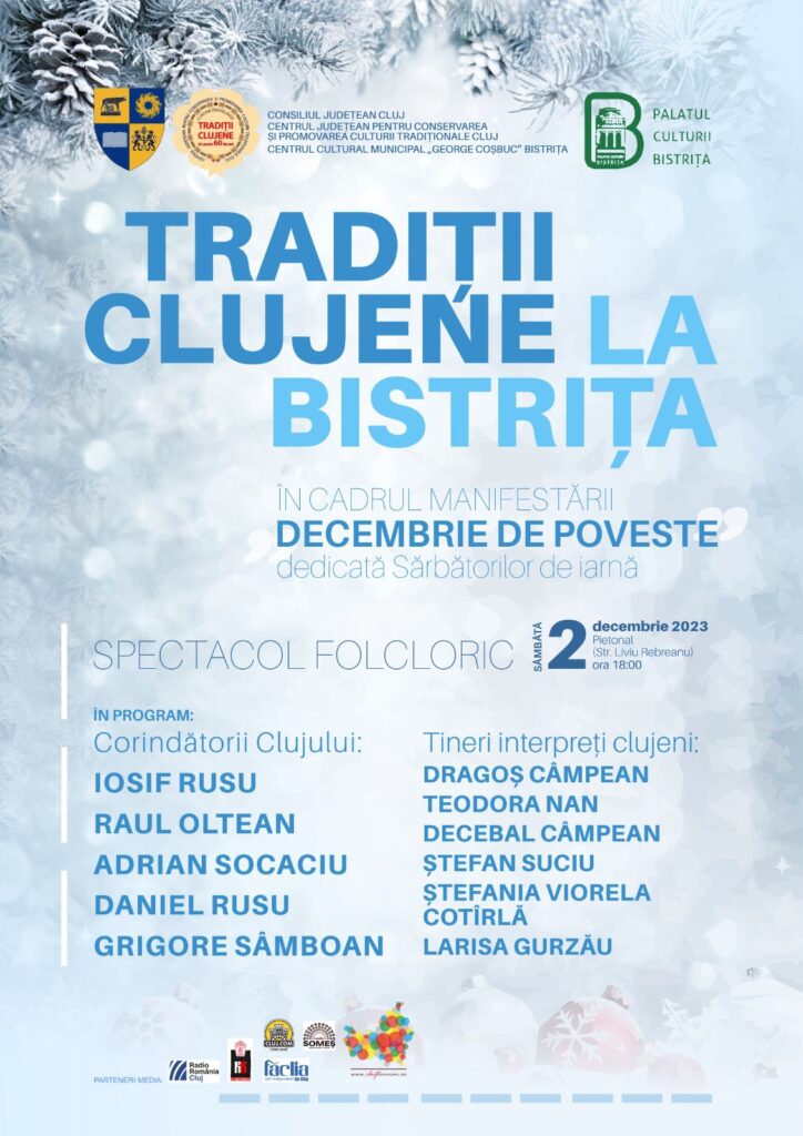 Sub genericul “Tradiții clujene, la Bistrița”, aceștia vor duce în fața bistrițenilor colinde tradiționale, așa cum se cântau mai demult în satele românești, dar și obiceiuri de iarnă.