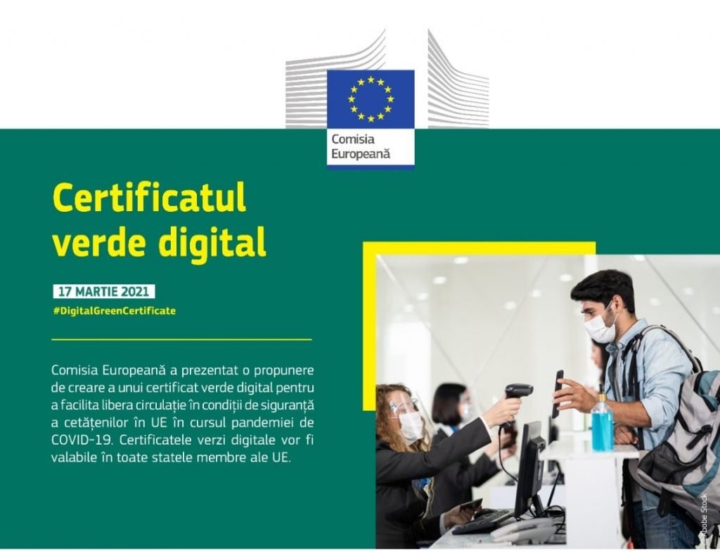 Astăzi, Comisia Europeană a propus crearea unei adeverințe electronice verzi pentru a facilita libera circulație, în condiții de siguranță, în interiorul UE în timpul pandemiei de COVID-19, a anunțat Comitetul Național de Coordonare a Activităților privind Vaccinarea împotriva COVID-19 (CNCAV). Adeverința electronică verde va constitui dovada că deținătorul a fost vaccinat împotriva COVID-19, a primit un rezultat negativ la testul de depistare a infecției cu virusul SARS-CoV-2 sau s-a vindecat de COVID-19.