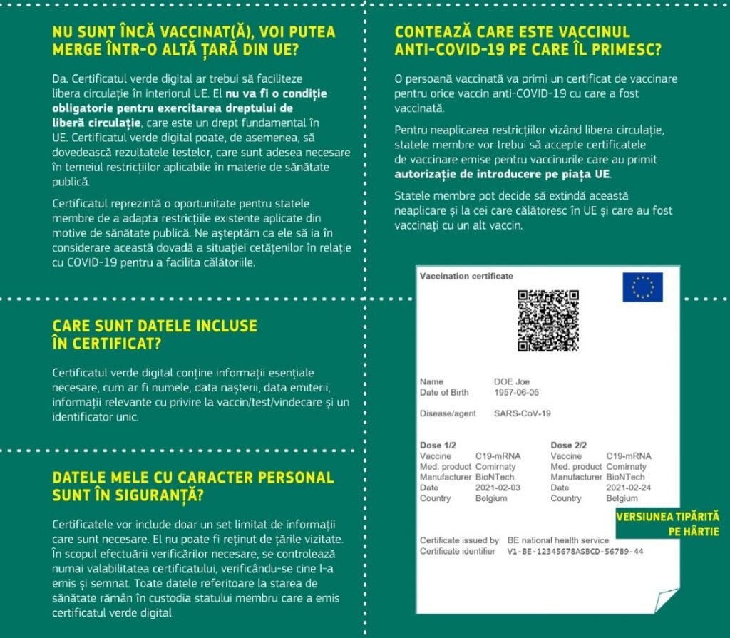 Adeverința electronică verde – Fișă informativă
