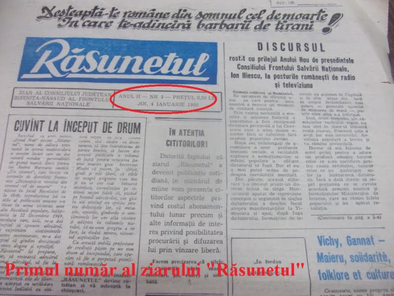 Stimate domn, vă rog in mod respectuos, să vă pregătiți apararea la subiectul poeziei „Ne-ați pus in maini abecedarul”, poezie omagiu dascălilor de ziua Invatatorului, scrisa de raposatul tatal meu General Vasile Teodorescu, Cetatean de Onoare al Orasului Bistrita. Conditie:-retractati public sau ne vedem in instanță ocazie cu care voi cere despăgubiri pentru dauna morală adusă familiei care a suferit de pe urma COMUNISMULUI.