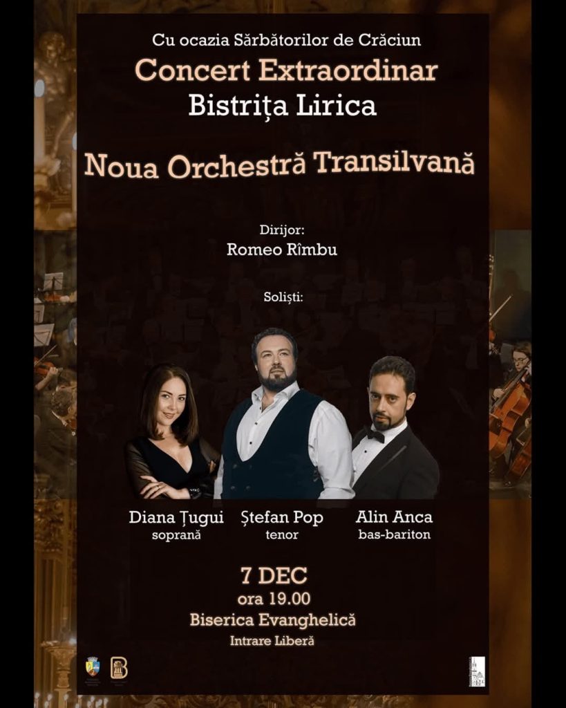 Cu ocazia sărbătorilor de Crăciun, Primăria Bistriţa, Centrul Cultural Municipal ”George Coşbuc” şi Parohia Evanghelică CA din Bistriţa organizează concertul extraordinar ”Bistrița Lirică”.