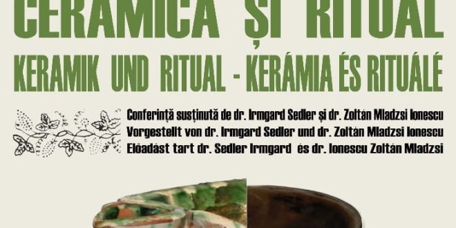 La Complexul Muzeal Bistrița-Năsăud va avea loc vineri, 8 august, de la ora 17:30, conferința ”Ceramică și Ritual – Keramik und Ritual – Kerámia és Rituálé”, organizată în parteneriat cu Siebenbürgisches Museum Gundelsheim din Germania și Asociația Casa Colecțiilor din Turda.