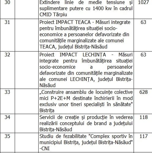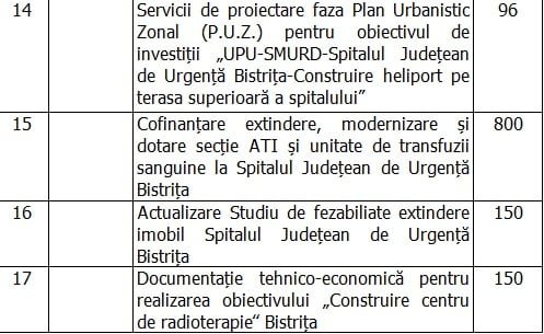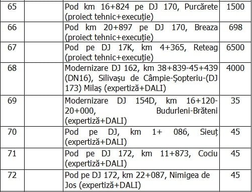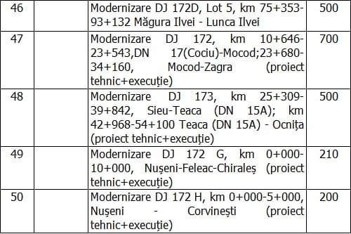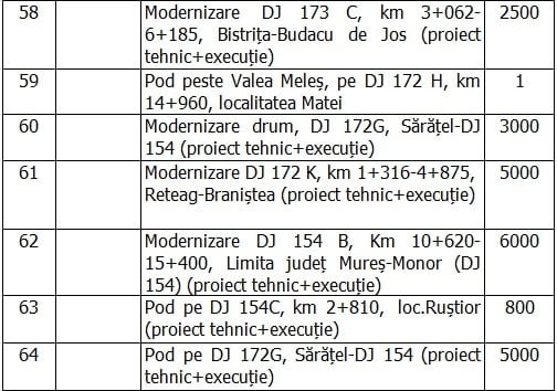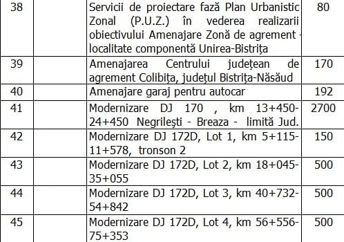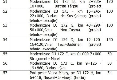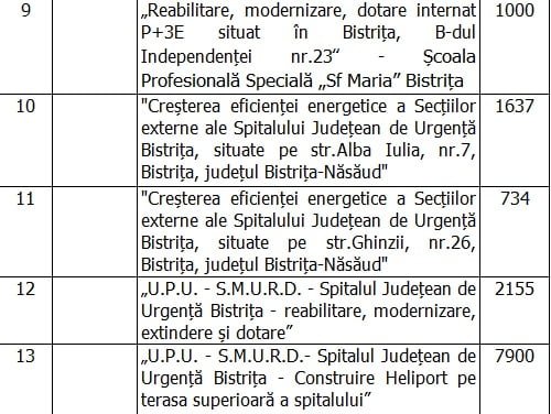 În proiectul de hotărâre sunt cuprinse 75 de obiective de investiții. Iată lista acestora: