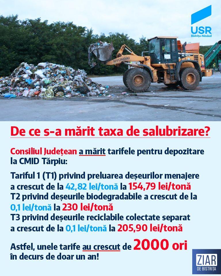 ”La inaugurarea din anul 2015, centrul trebuia să operaționalizeze stația de sortare a deșeurilor reciclabile și stația de compostare a deșeurilor biodegradabile. Cu toate acestea, Consiliul Județean Bistrița-Năsăud s-a declarat surprins de colectarea selectivă și instituirea taxei pentru economia circulară și a mărit tarifele la depozitare, nu doar pentru deșeuri menajere, dar și pentru reciclabile și biodegradabile. Asta deși taxa pentru economia circulară nu le vizează pe acestea. Și nu oricum, ci de peste 2000 ori, în majorări succesive, la prețul pe tonă! Această majorare a operat și asupra contractului cu Supercom, crescând partea de cheltuieli destinate depozitării”, a mai completat Iurișniți.