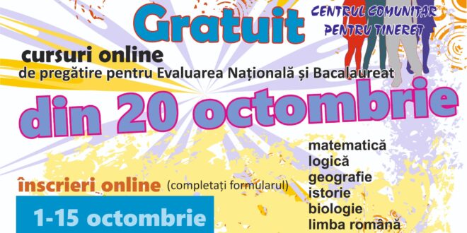 Cursurile de pregătire pentru Evaluare Națională și Bacalaureat încep în data de 20 octombrie și se desfășoară online. Participarea la aceste cursuri este gratuită.