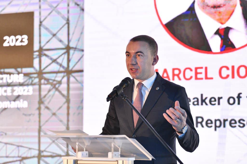 Parlamentarul PSD a luat cuvântul în deschiderea evenimentului, în calitate de reprezentant al președintelui Camerei Deputaților, Marcel Ciolacu.