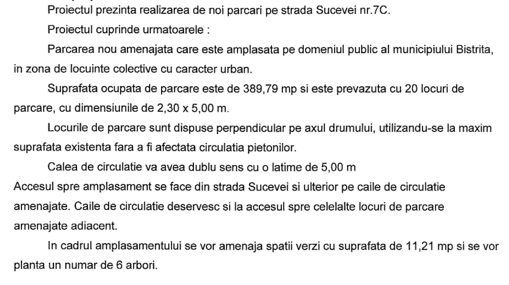 Primăria Bistrița a solicitat Agenției pentru Protecția Mediului Bistrița-Năsăud emiterea acordului de mediu pentru două proiecte care vizează amenajarea unor parcări la sol în două zone din municipiu – strada Sucevei și strada Dumbravei.