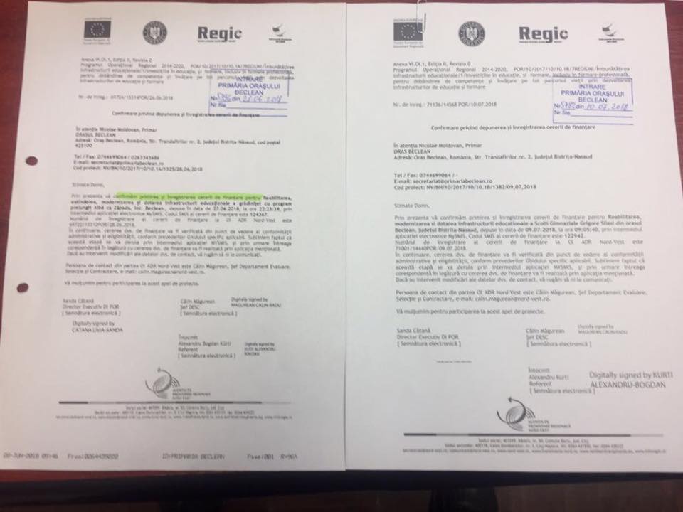 ”Este vorba despre proiectul de modernizare al Grădiniței „Albă ca Zăpada” în valoare de 1,5 milioane de euro și cel de reabilitare totală a Școlii Generale „Grigore Silași” în valoare de 1,8 milioane de euro. Aceste două unități de învățământ aveau nevoie de o schimbare în bine și, din ce am văzut în proiectele gândite de specialiști, la final vor arăta impecabil, demne de standarde europene” a declarat primarul orașului Beclean, Nicolae Moldovan.