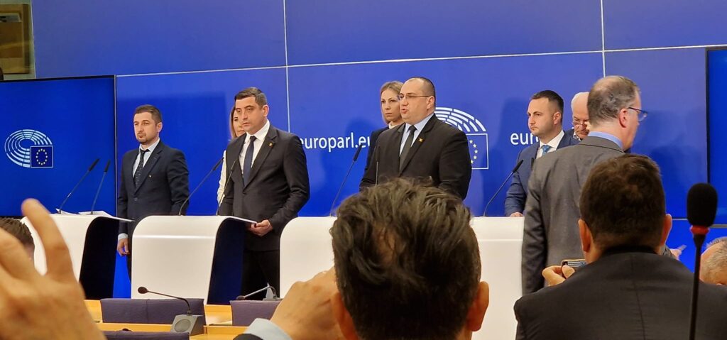Împreună cu mai mulți români, liderii AUR au protestat în fața Comisiei Europene împotriva discriminărilor la care sunt supuși românii în cadrul măsurilor europene.