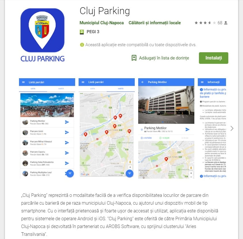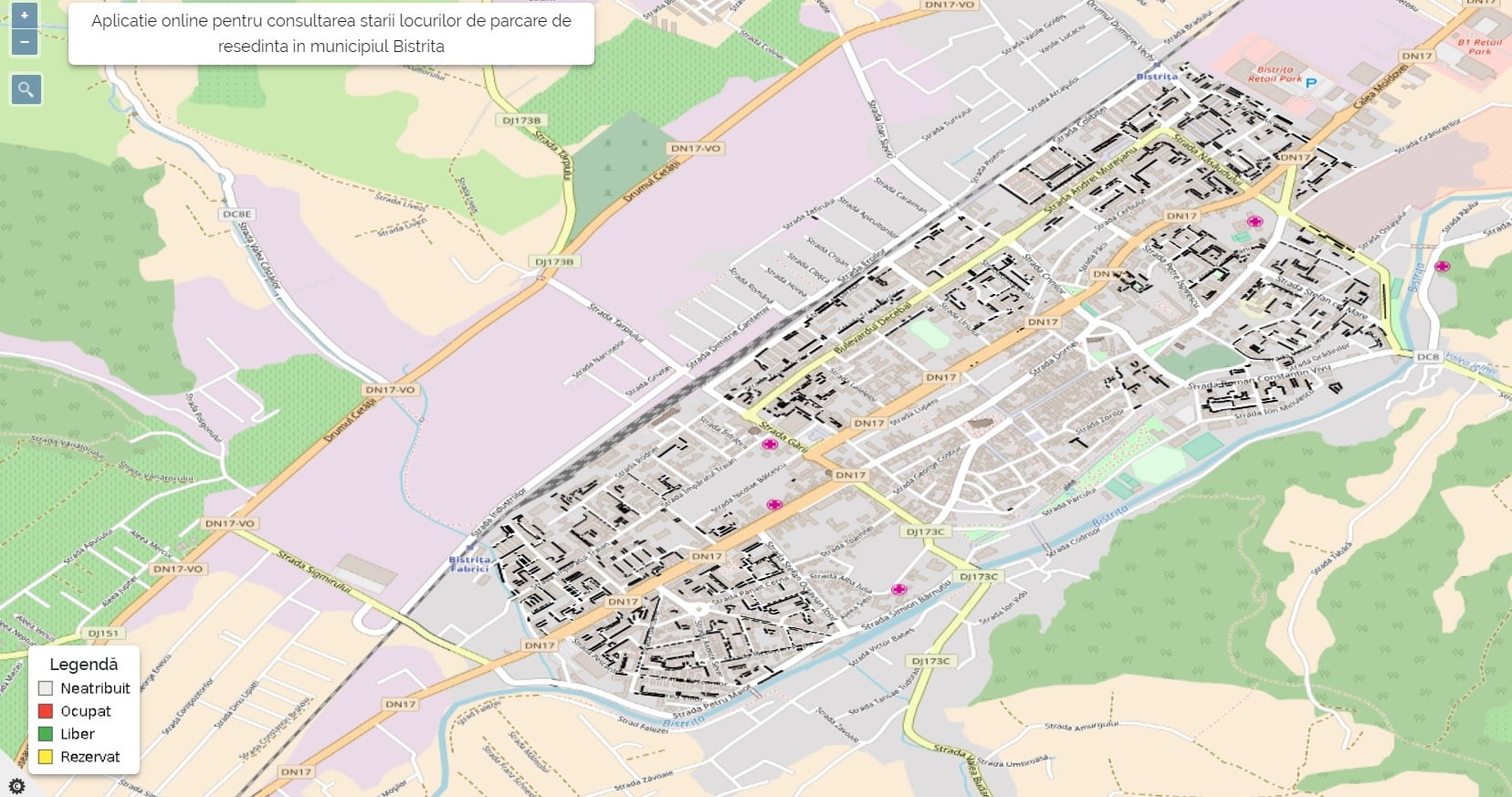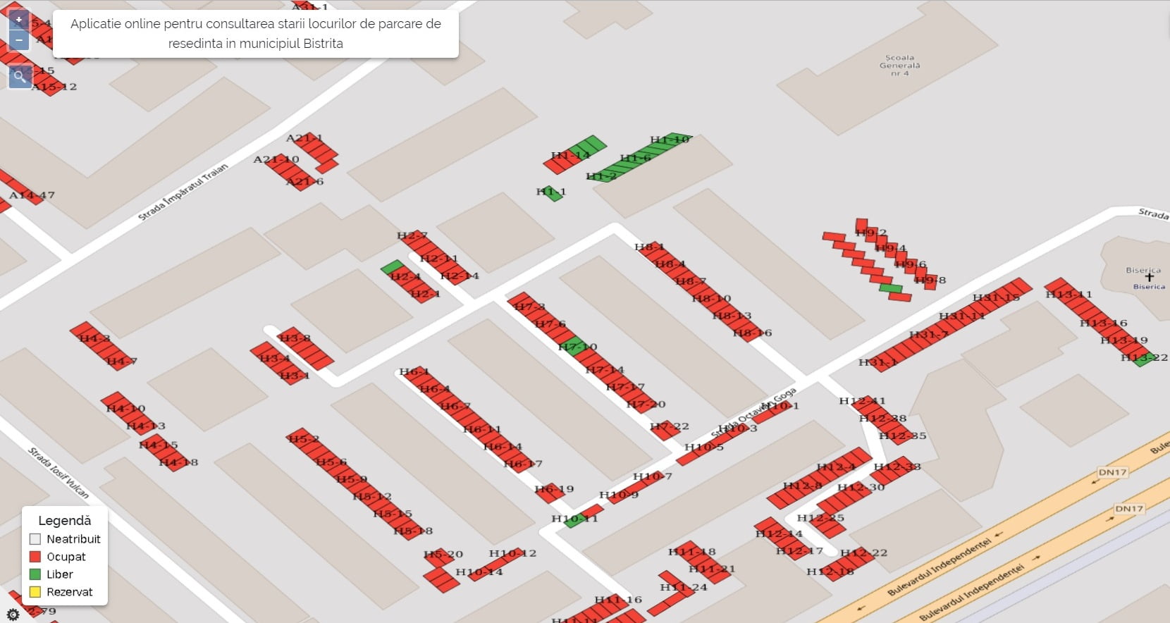 Pe acest fond de lucru, implementarea unei banale aplicații care afișează locurile de parcare de reședință (NU cele publice, plată) pare o mare realizare. Deși investiția a fost promisă încă de-acum 4 ani, încă NU a fost lansată oficial, dar se află în probe și poate fi vizualizată AICI.