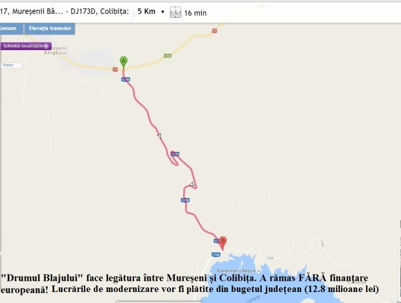 DIMEX 2000 COMPANY S.R.L a câștigat licitația la 12.8 milioane de lei și va moderniza acest drum. Locul principal de executare: pe drumul judetean DJ172D, km 0+000-11+578, Muresenii Bargaului (DN17) – Lac Colibita -Colibita, tronson 1, km 0+000 – 5+115. Lucrările au fost estimate la 20 de milioane de lei, dar oferta cea mai mică a venit din partea DIMEX, firma care a câștgiat până la urmă acest contract.
