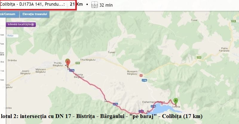 Lot 2 – km 18+045 – 35+055: lac Colibiţa – Bistriţa Bârgăului – Prundu Bârgăului (int. cu DN17)