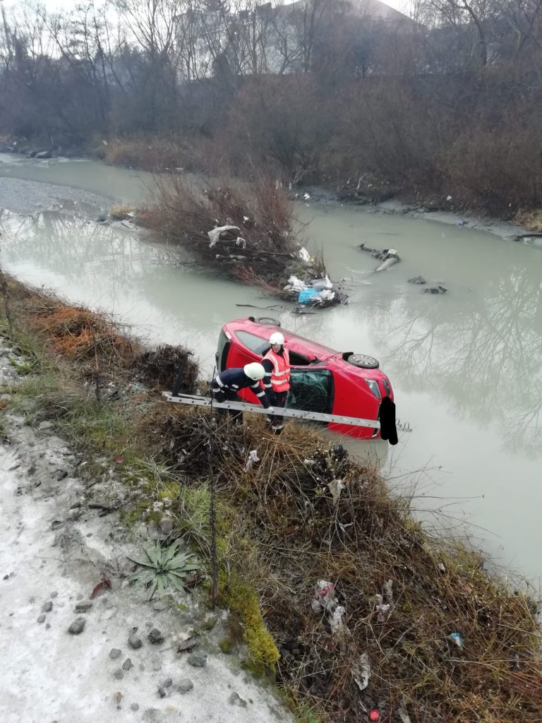 Reamintim că, joi dimineața, o tânără a plonjat cu mașina în râul Bistrița. Din cauză că drumul era acoperit cu polei, soferița a pierdut controlul asupra direcției de deplasare și mașina s-a răsturnat în albia râului Bistrița.