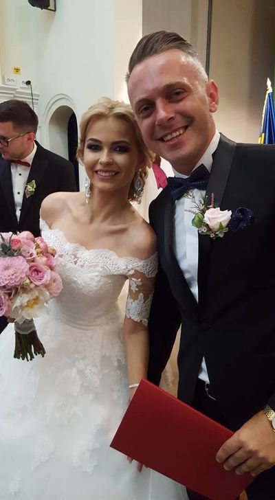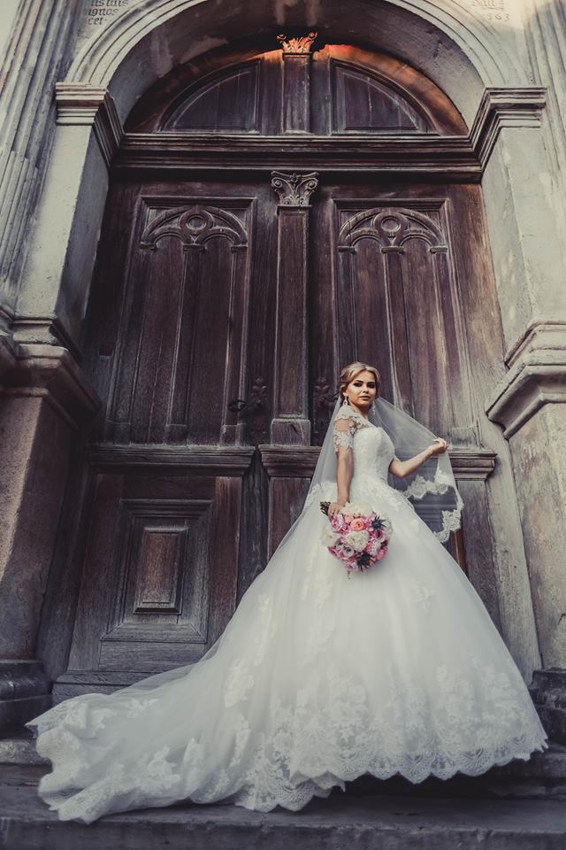 Alexandra a ales o ținută senzuală, de prințesă, cu voal, trenă lungă și accesorii spectaculoase iar Marius a purtat un costum închis la culoare, cu papion și cămașă albă. Buchetul miresei a fost realizat din bujori albi și roz, ca de altfel toate aranjamentele florale care au dat o notă de eleganță evenimentului.