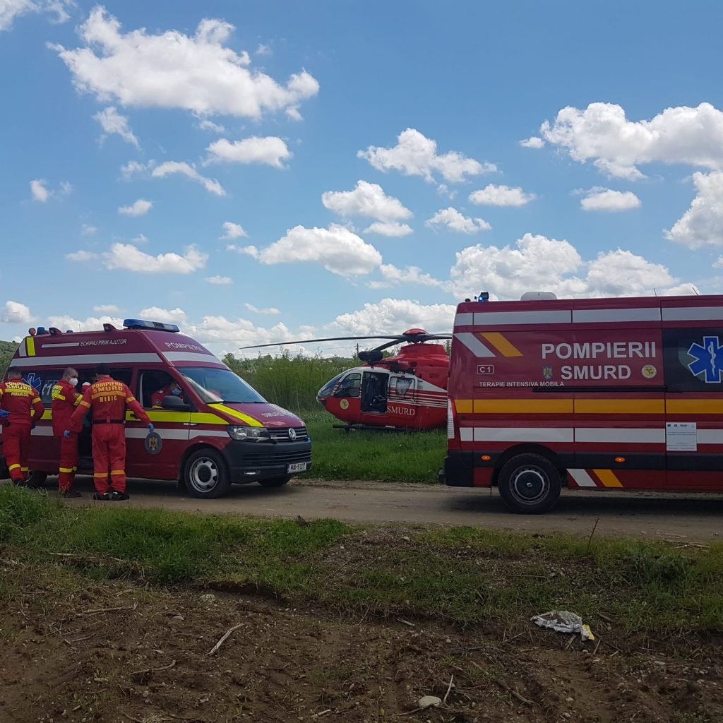 Dată fiind starea victimei, care este inconștientă, echipajele medicale au solicitat și intervenția unui elicopter SMURD.