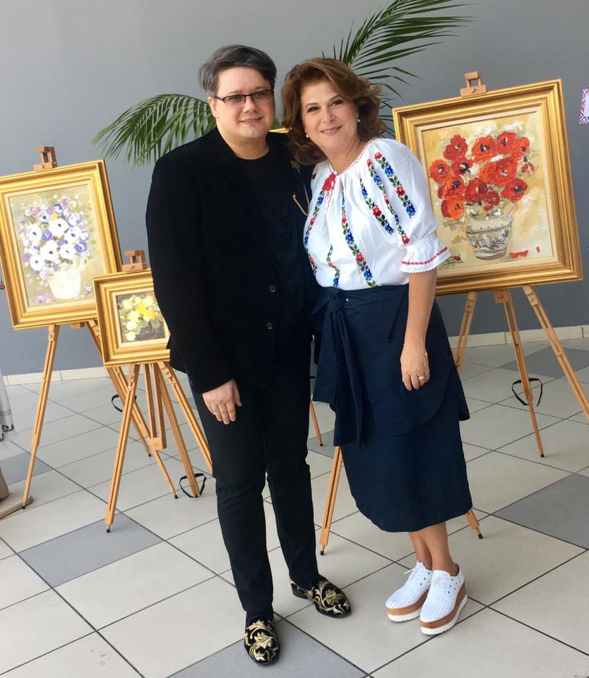 A fost onorant, eu fiind oricum apolitic, deloc implicat in povestea ce tine de acest domeniu! Dar am fost invitat de către doamna europarlamentar Viorica Dancila, iar eu merg peste tot acolo unde sunt dorit și apreciat! Contextul de ieri a fost unul înălțător – tablourile mele, realizate in ultimele luni, au tronat între costume populare readucând aminte tuturor de valorile naționale și de frumusetea unor simboluri autentice! Firește ca doamnele s-au emoționat, iar eu am fost fericit ca am putut creiona in mod armonios atmosfera cu arta mea! Mai jos, câteva instantanee alături de doamne emblema ale politicii românești – Ecaterina Andronescu, Carmen Dan și Rovana Plumb! ” – a postat Fuego pe pagina de facebook.
