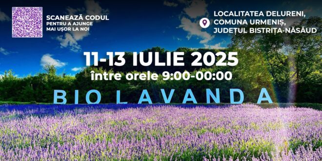 Între 11 și 13 iulie, localitatea Delureni din comuna Urmeniș găzduiește cea de-a cincea ediție a Festivalului Biolavanda. Într-un peisaj dominat de movul intens al lavandei, vizitatorii sunt invitați să redescopere tihna și bucuria lucrurilor simple.